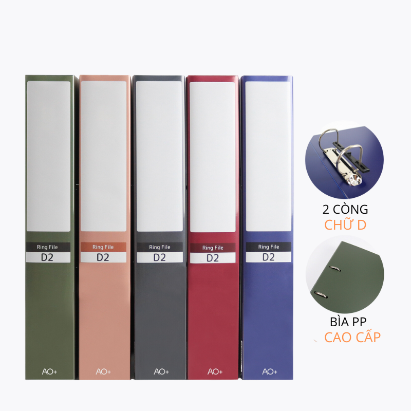 - Tên sản phẩm: Bìa Còng D2 Switch AO+, Nhựa PP/ A4, 2 Nhẫn D (3.5cm/ 5cm)