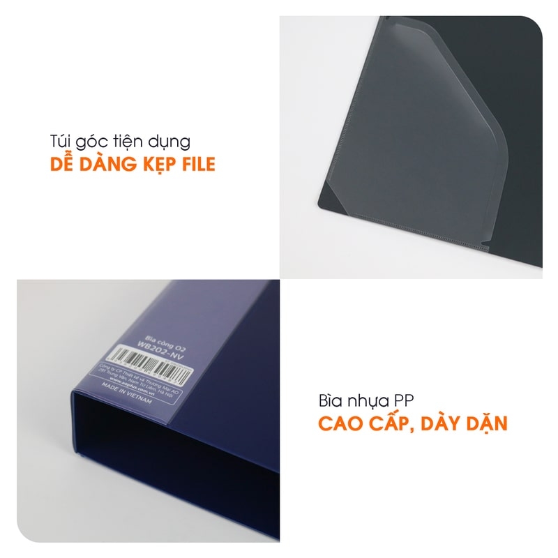 - Bìa nhựa PP dày dặn, bền hơn, cứng cáp, dễ đứng vững