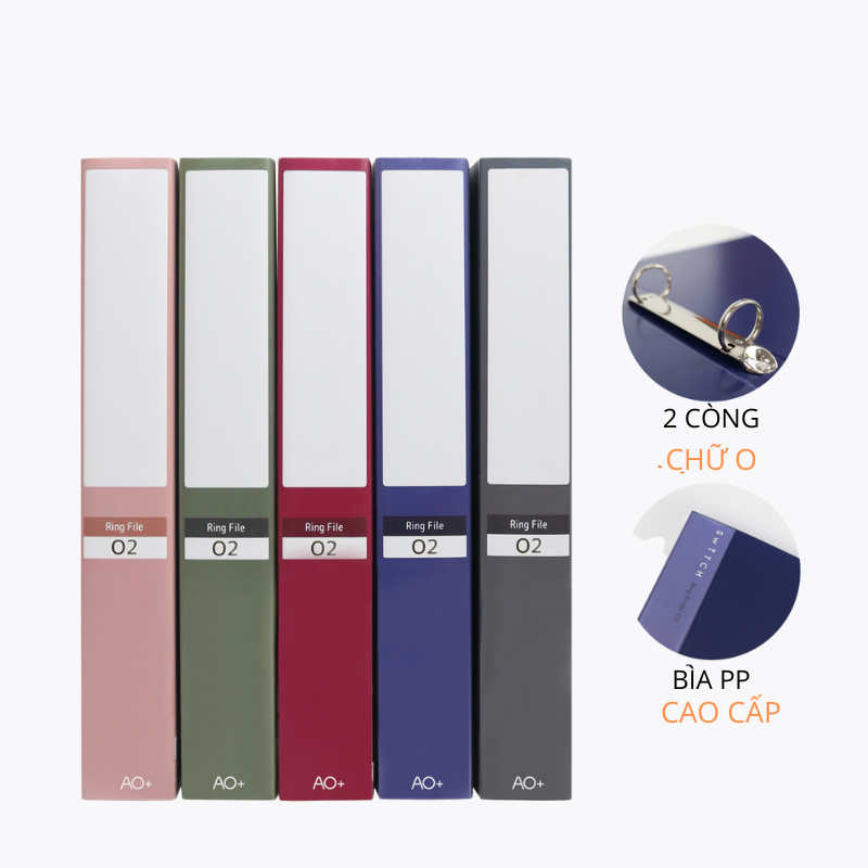 - Bìa Còng O2 Switch AO+ là vật dụng thiết yếu trong văn phòng giúp bạn bảo quản giấy tờ, đựng hồ sơ một cách ngăn nắp, chỉn chu, tối ưu diện tích, không gian văn phòng.