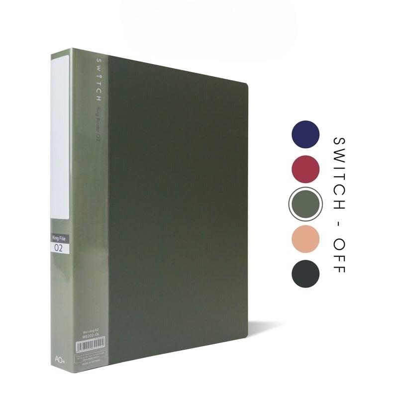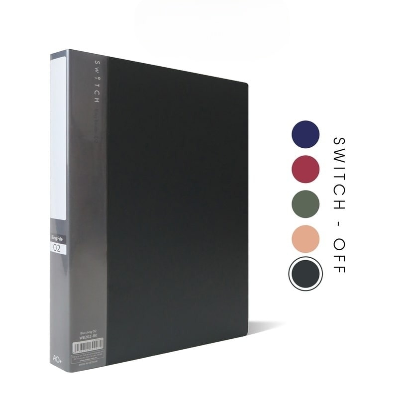 Tên sản phẩm: Bìa Còng O2 Switch OFF AO+, Nhựa PP/ A4, 2 Nhẫn O (2.6cm/ 3.2cm)