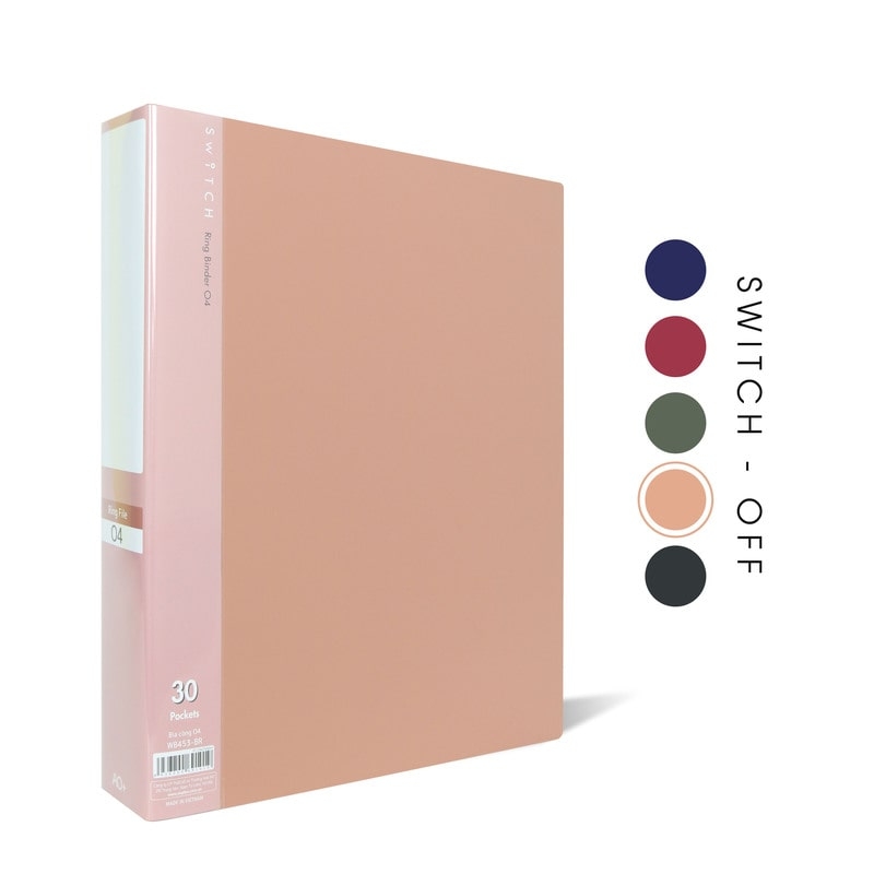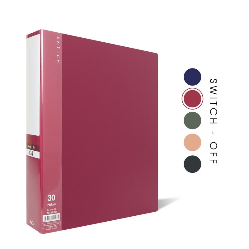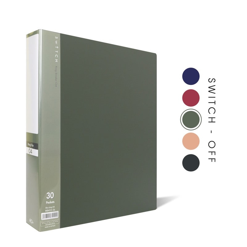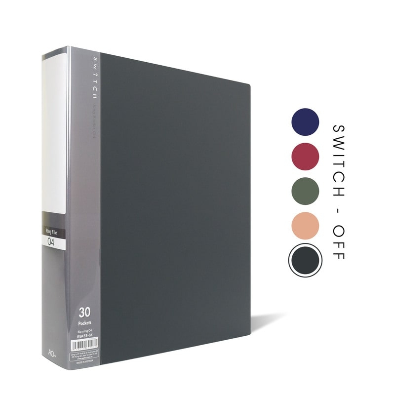- Tên sản phẩm: Bìa Còng O4 Switch OFF AO+, Nhựa PP/ A4, 4 Nhẫn O, Kèm Bộ Phân Trang và Túi Sơ Mi Lỗ, (25/35/50 mm)