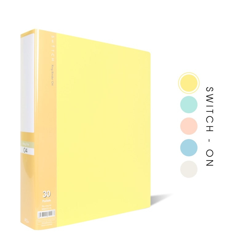 - Tên sản phẩm: Bìa Còng O4 Switch ON AO+, Nhựa PP/ A4, 4 Nhẫn O, Kèm Bộ Phân Trang và Túi Sơ Mi Lỗ, (25/35/50 mm)