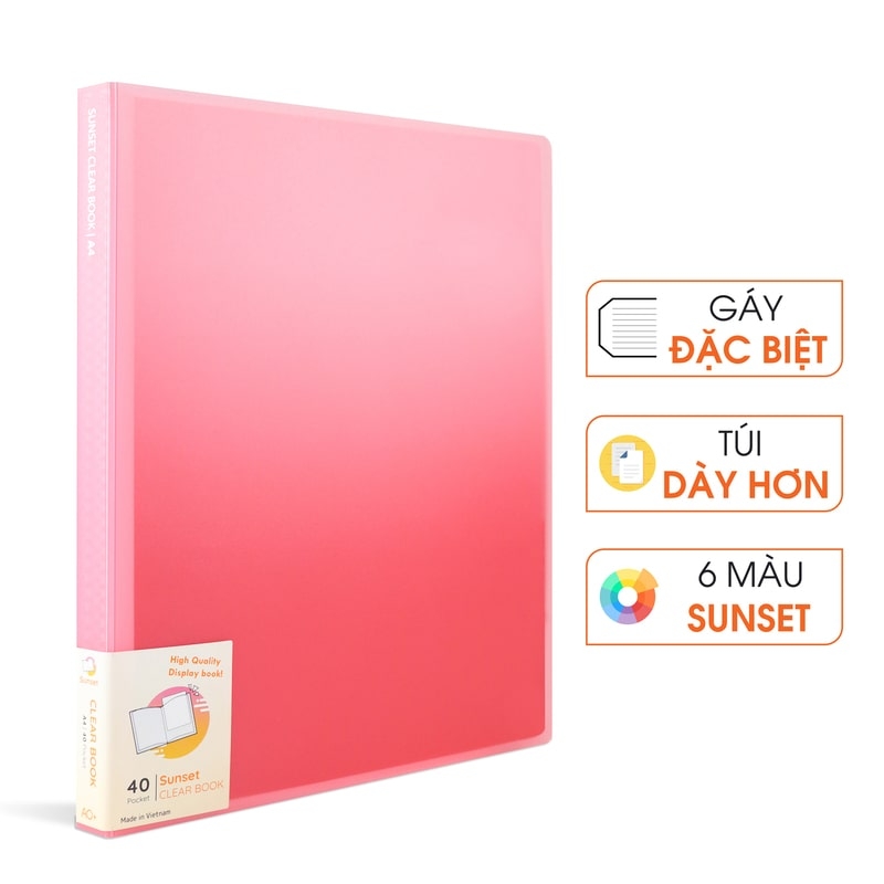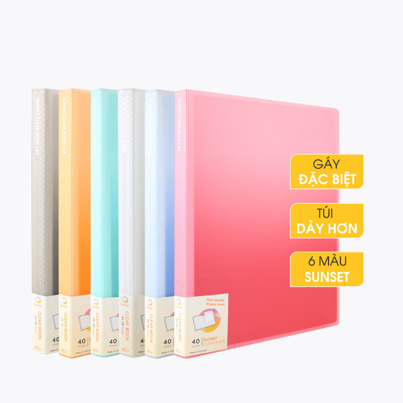 - File Lá (Bìa lá) Suset Clear Book với bìa bán trong suốt chuyển màu liên tưởng đến bầu trời lúc hoàng hôn - mang lại cảm giác thư thái, thú vị khi sử dụng.
