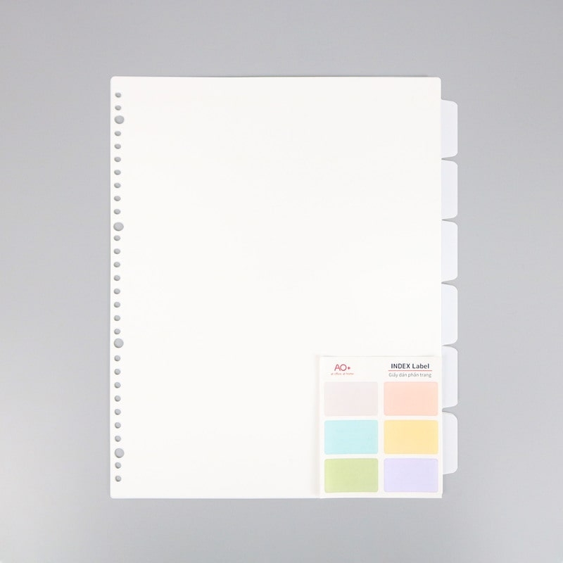 - Tên sản phẩm: Bìa Phân Trang, Giấy dán phân trang AO+ Nhựa PP/ A4 (Bộ 6 Tab Phân Trang)