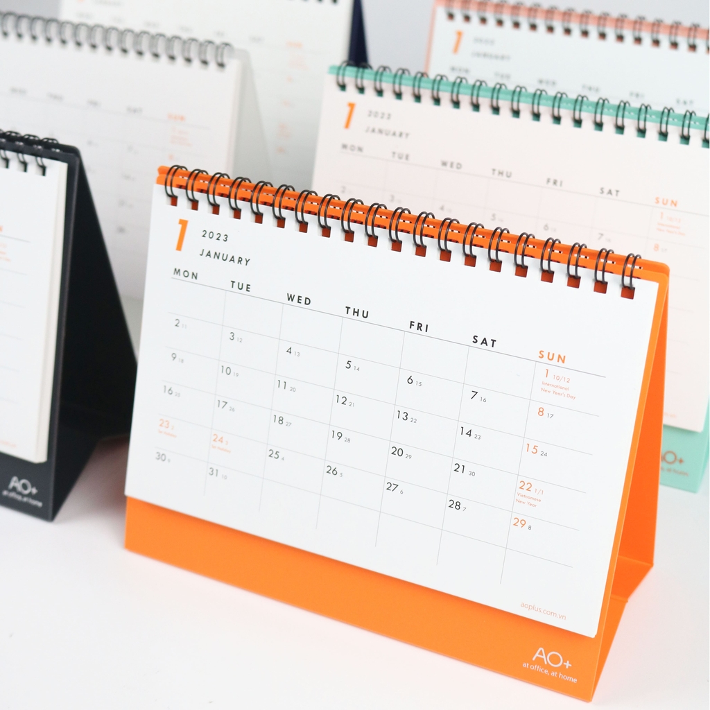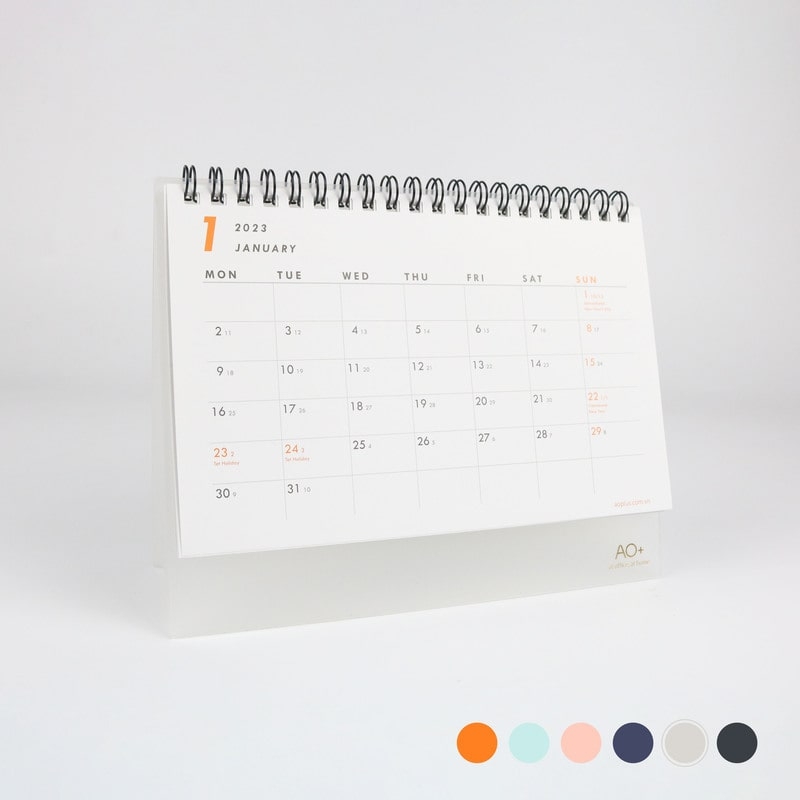 - Tên sản phẩm: Lịch Để Bàn 2023 AO+ Có Ngày Âm Nhỏ Gọn (Đế Nhựa/ 6 Màu)