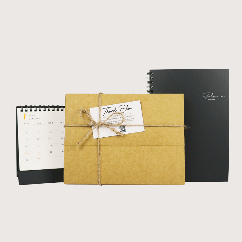- Sổ và Lịch được bọc trong hộp giấy thanh lịch, bạn có thể đính kèm thiệp thêm phần lịch sự cho hộp quà.