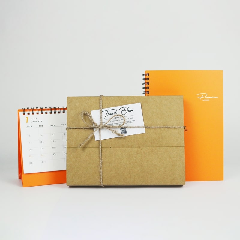 - Sổ và Lịch được bọc trong hộp giấy thanh lịch, bạn có thể đính kèm thiệp thêm phần lịch sự cho hộp quà.