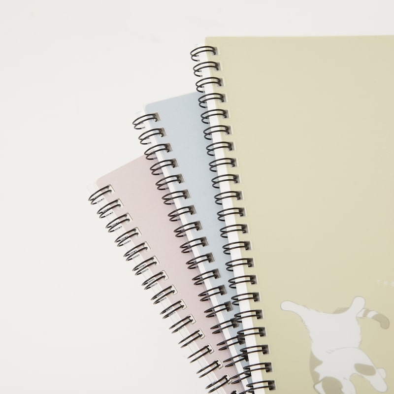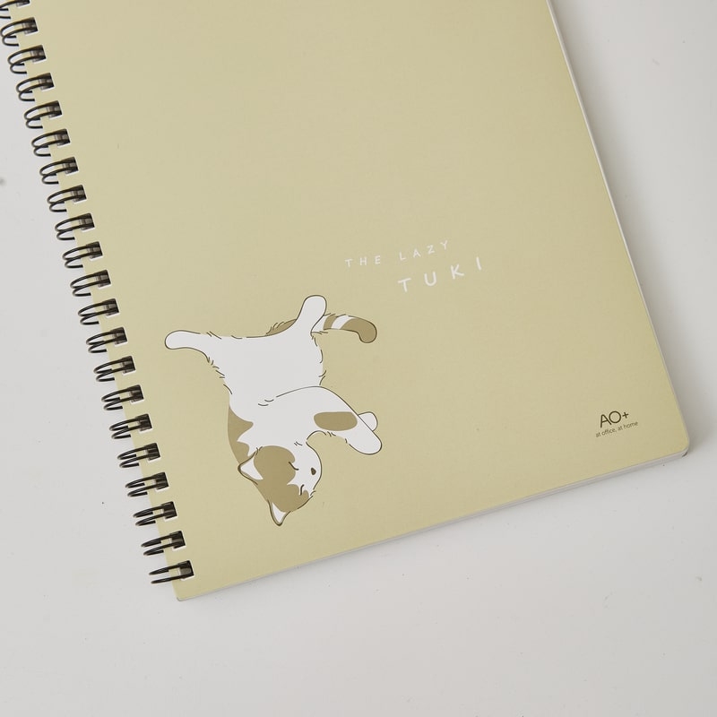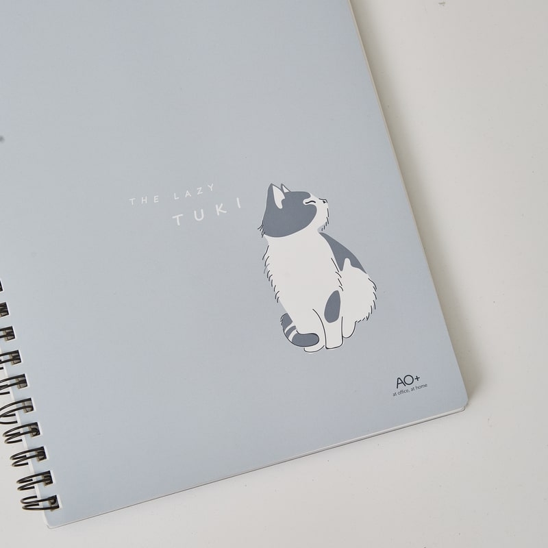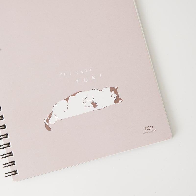 - Bìa đơn sắc màu tự nhiên kèm theo hoạ tiết mèo Tuki vui nhộn đi kèm gáy lò xo.