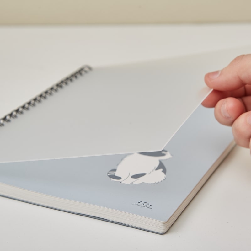 - Tên sản phẩm: Sổ tay hoạ tiết mèo Tuki, A5 bìa nhựa gáy lò xo 140 trang thương hiệu AO+